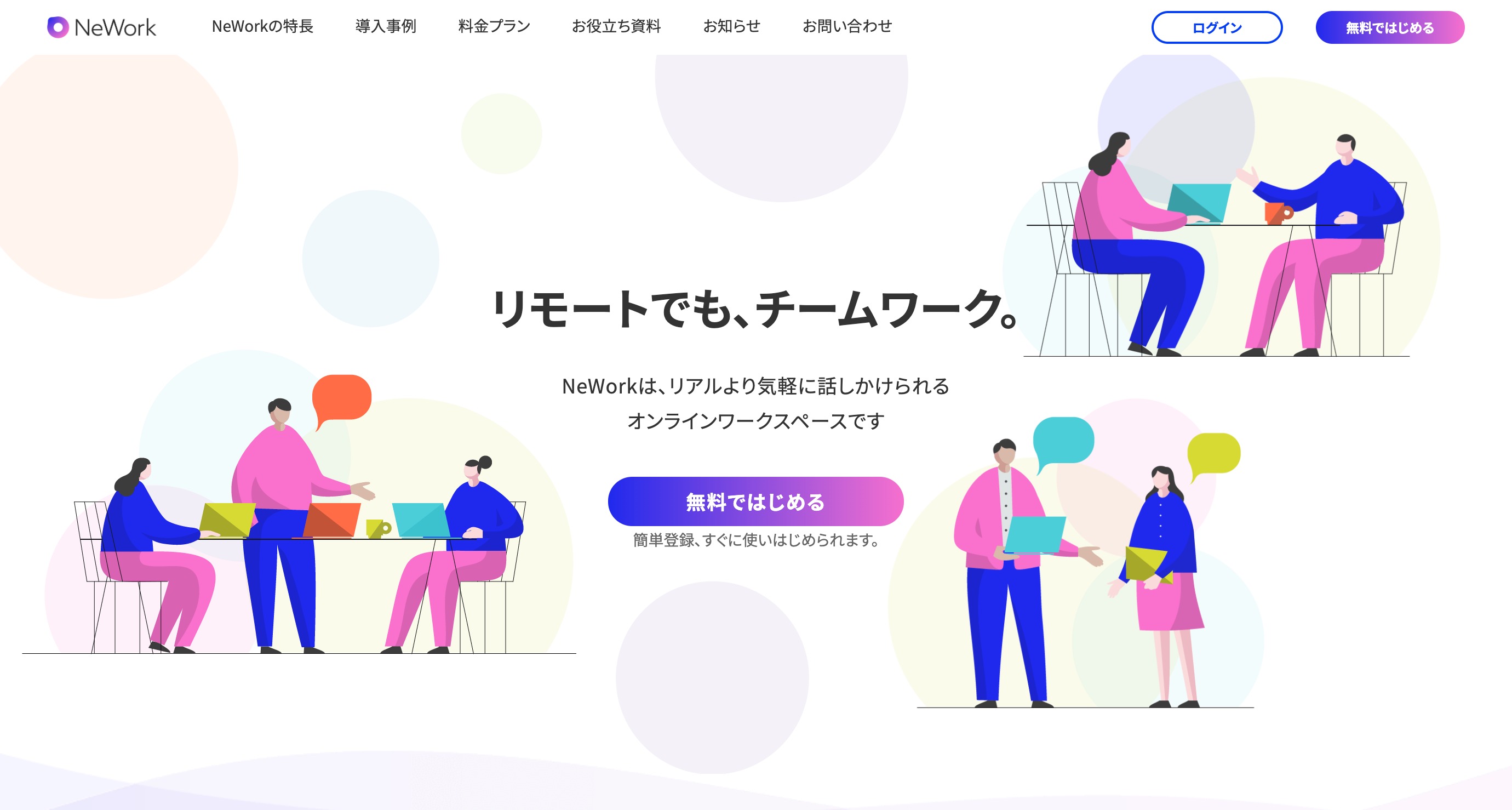 NTTコミュニケーションズが提供するサービスです。バブルと呼ばれる枠に入ることで、会話ができます。また、自分のステータスを色で表現することで、話しかけていいか分かるようになっています。