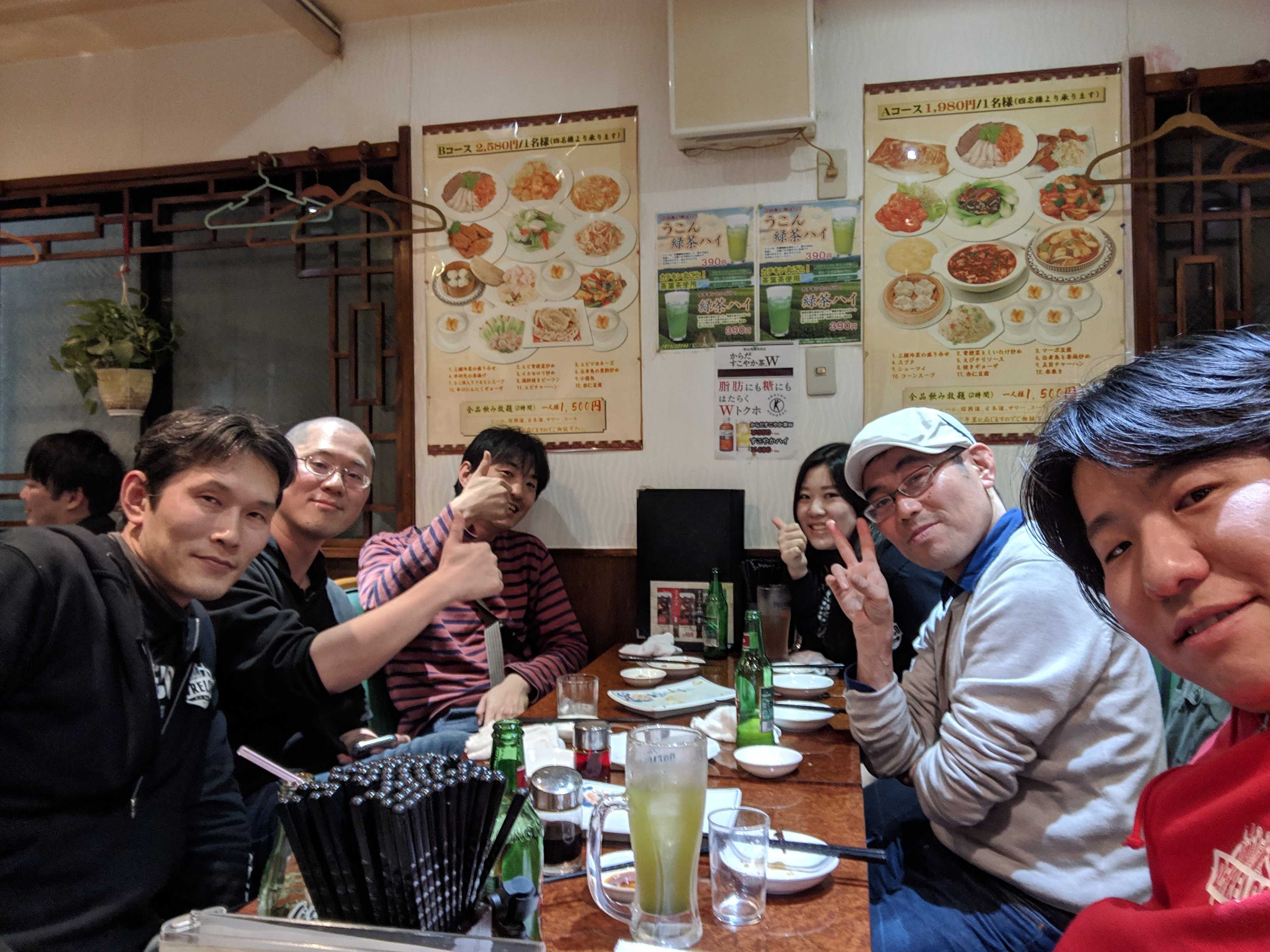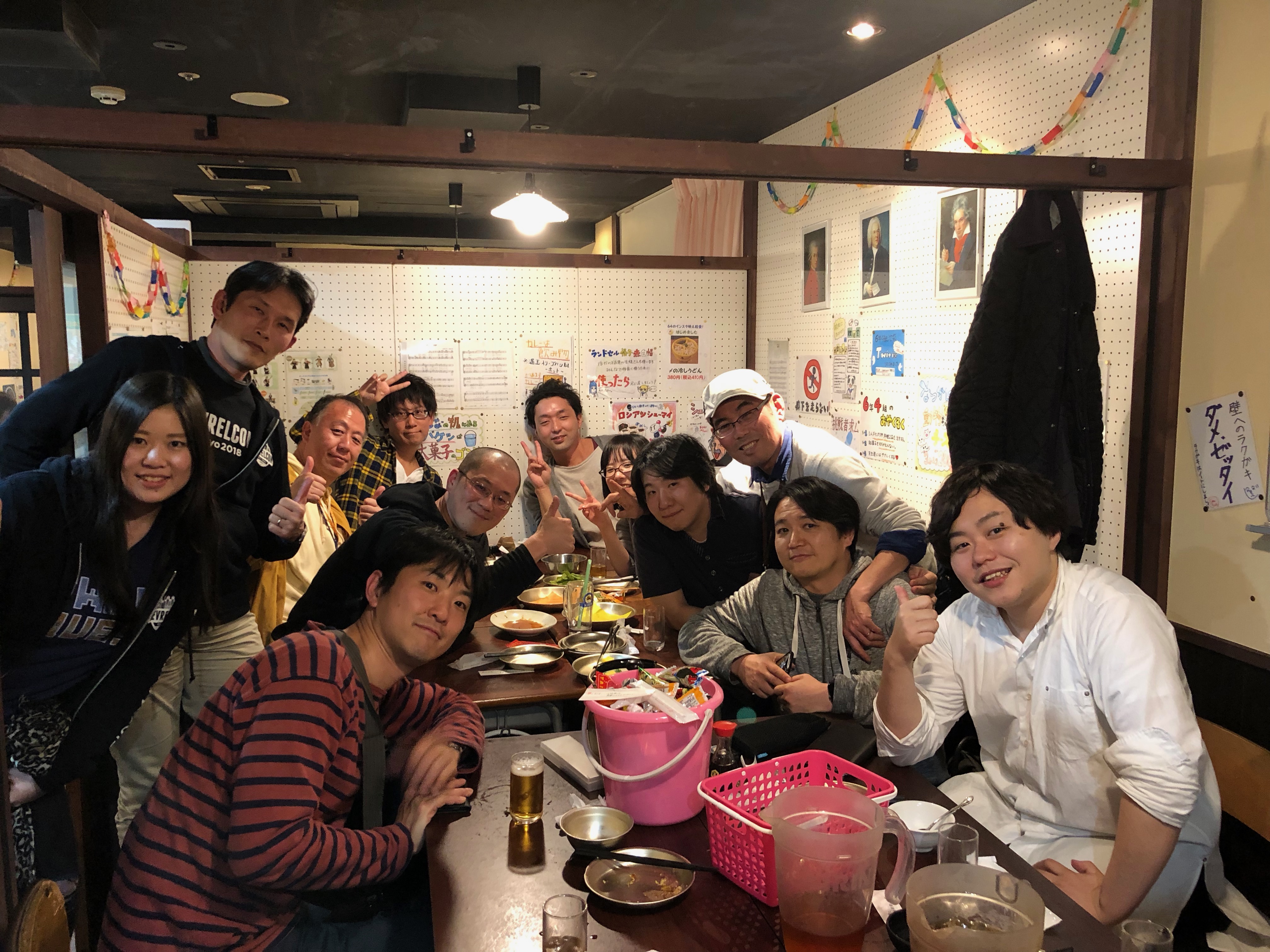 技術書典終了後は、入り口で記念撮影をして、打ち上げに向かいました。アンオフィシャルな打ち上げイベントもあったのですが、他のコミュニティメンバーも交えて打ち上げする予定で人数も多かったので居酒屋での打ち上げになりました。
