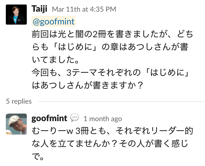 共著の場合、誰かが序章部分を書いたり、他のメンバーの進捗を管理しないといけません。前回は私がやったのですが、今回から各書籍ごとにリーダーを立てて、その人にお任せすることにしました。
