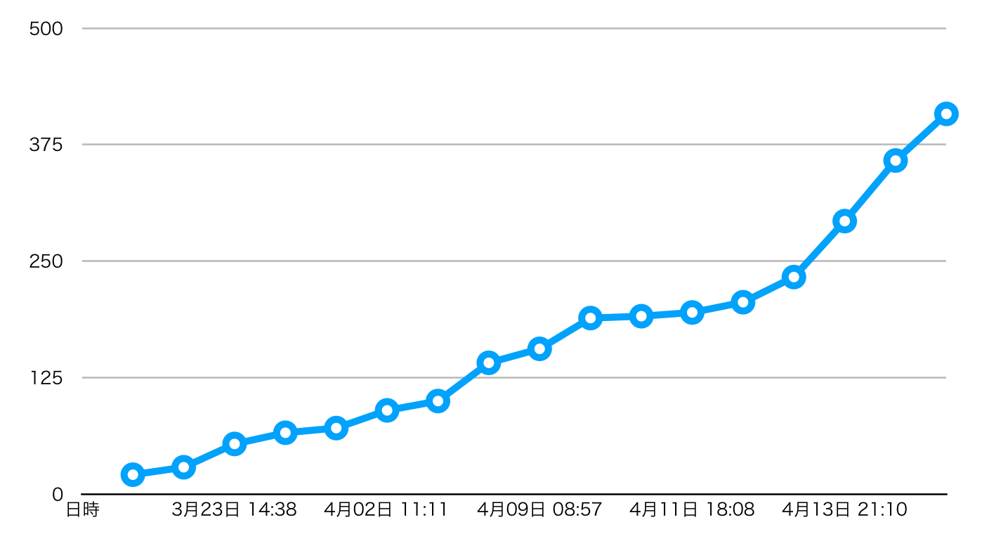 チェック数が増えるということは、それだけ認知されているということなので、まず知ってもらうという目的においては満足な結果となったのではないかと思います。ちなみに技術書典5は被チェック数71なので、6倍弱のチェック数を得られたと言うことになります。コンテンツが刺さったということですね!