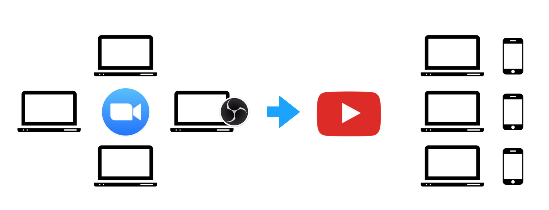 後者の仕組みの場合、OBSからYouTube Liveであったり、Twitchなどで配信ができます。こうすることで、人数の問題を超えて配信できたり、OBS上にツイートなどの追加情報を出すこともできます。オンラインミートアップの場合、参加人数が多くなる傾向があるので、個人的にはこの方法をとることが増えています。