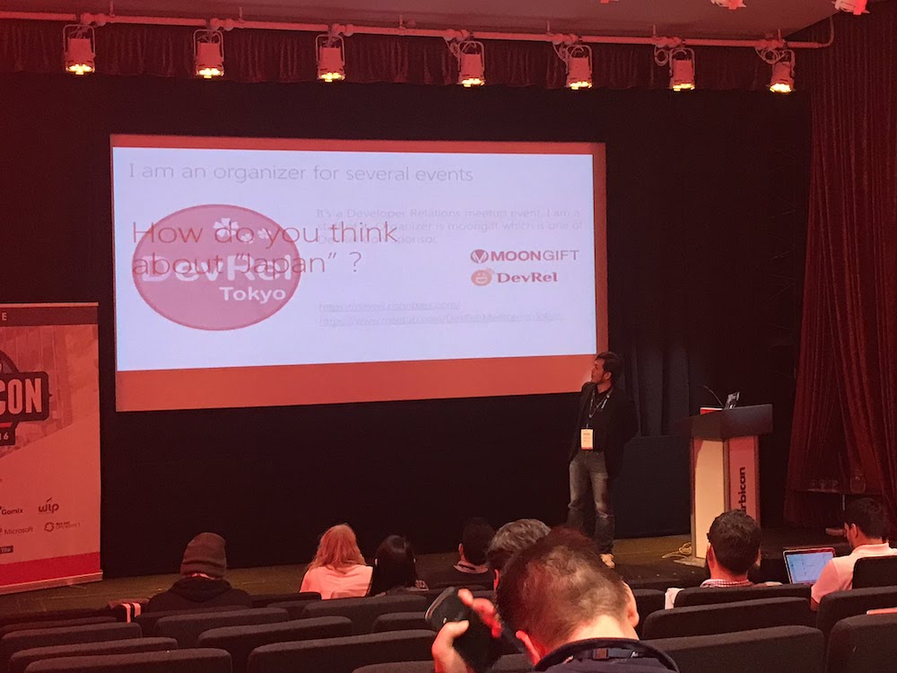 Facebookが実施しているF8の中で発表された内容を元にデモを作って、Facebookの技術の人に見てもらったり(喜んでくれてTシャツをもらいました)、DevRelConというDevRelに関するグローバルなカンファレンスの第1回、100人以下で実施された時にわざわざ日本から参加したり(日本、ひいてはアジアからの参加者は私一人でした)、DevRel Summitという別なDevRelカンファレンスに参加したのをきっかけに登壇する機会をもらったりしました。海外のカンファレンスはコネクションを作るのに大いに役立ちます。