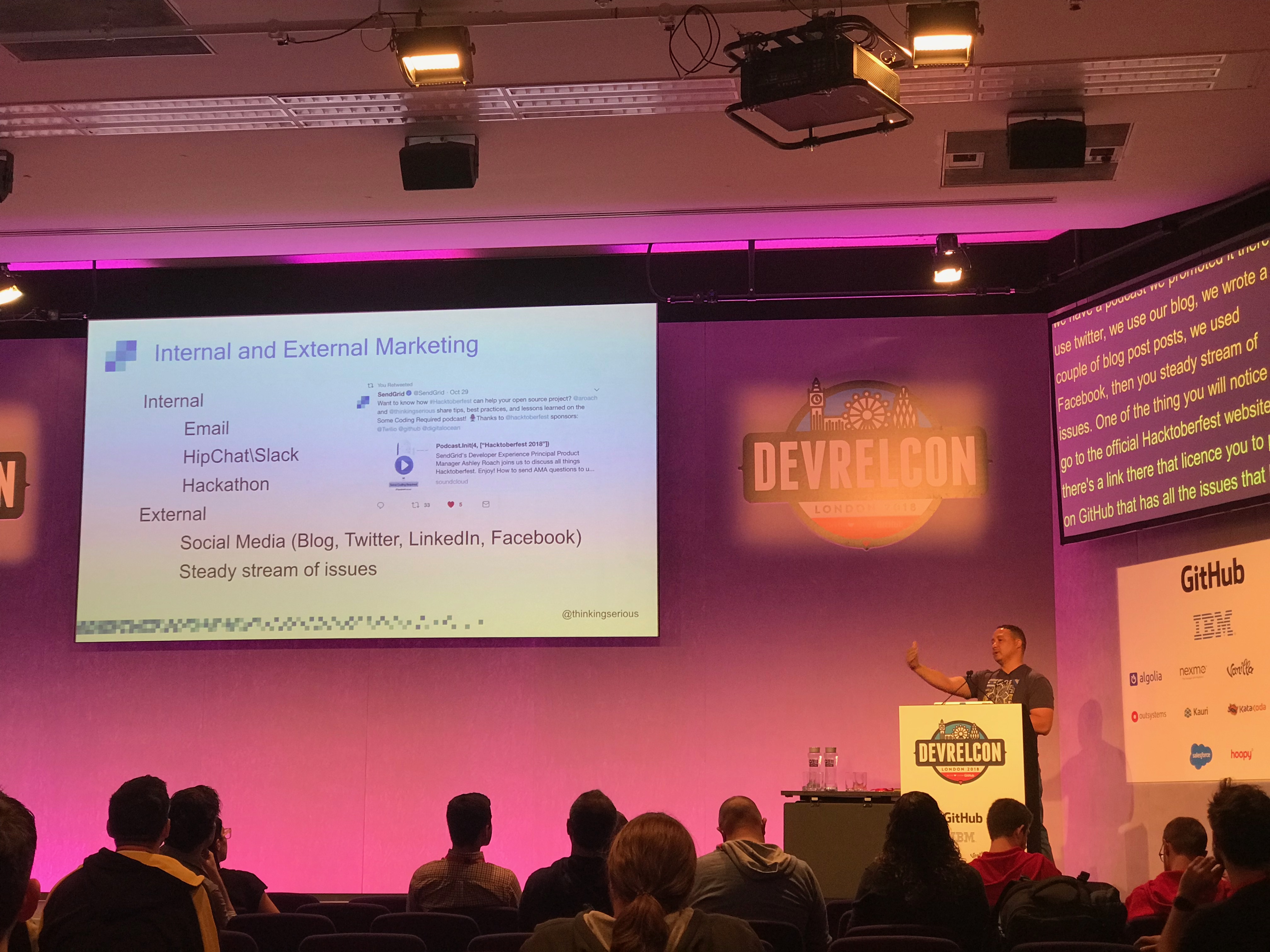 7月15日にはDevRelCon Tokyo 2018を開催できました。これはお金と開催責任についてはMOONGIFTが見ていますが、運営はDevRel Meetupのメンバーによって執り行われています。むしろ私は当日までの準備係であって、当日はリラックスして過ごしていたくらいです。
